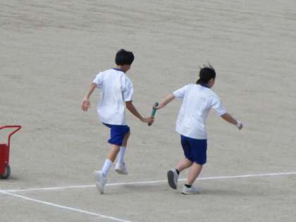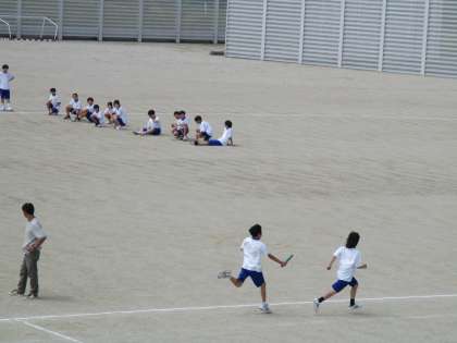 バトン渡しの練習をしています。今週リレーカーニバルがあるので、気合いが入っています。