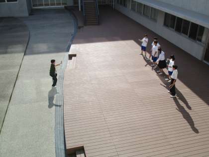 「学びのニワ」(通称 中庭)から威勢のよいエールが聞こえてきます。