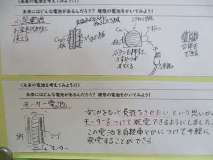 「こんな電池があったらいいな」と、それぞれ夢の電池を発明してみました。