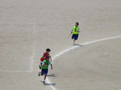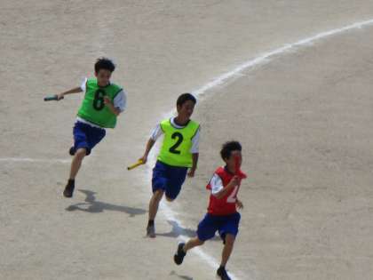 今日は、1年生のリレーカーニバルを行いました。陰一つ無いグラウンドで、熱中症予防対策をしながら、行いました。