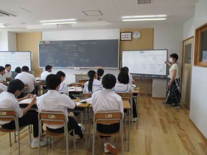 2つに分かれて、それぞれ2次方程式の問題にチャレンジしています。