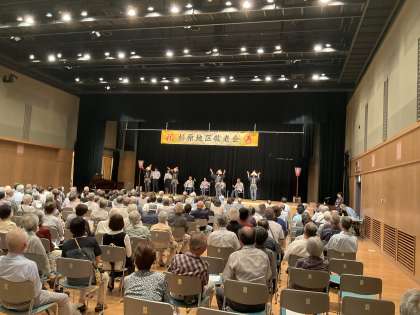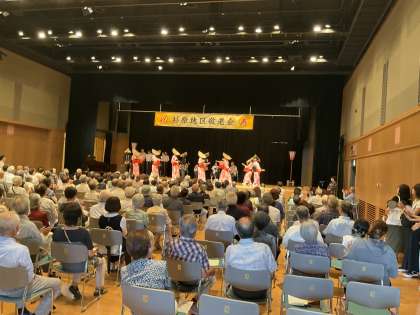 八尾コミュニティセンターで、杉原地区敬老会があり、郷土芸能部が出演依頼を受けて、日頃の練習の成果を発表しました。