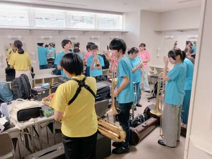 会場に到着しました!まずは音出し。楽屋で本番に向けて、準備しています!