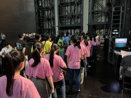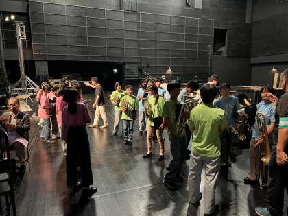 本日は吹奏楽祭です。生徒は準備を終え、舞台袖に移動しました。まもなくです!