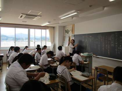 写真上は、国語の授業の様子です。文章の組み立てについて学習しています。