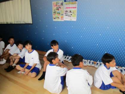 男子は集会室、女子は会議室で心臓検診を行いました。