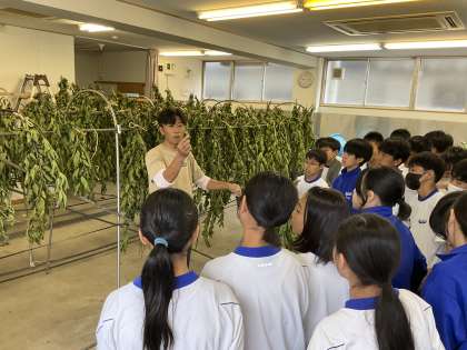 1年生は、総合的な学習の時間のテ−マ「八尾を知る」の活動の一環として、室牧地区にある「桑の葉工房」を訪れています。