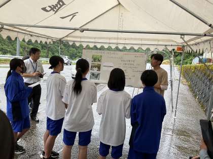 桑の葉栽培や桑摘みについて、福祉施設が取り組んでいる内容を説明していただいています。