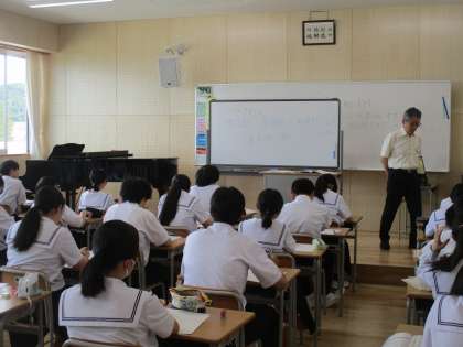 写真下は、音楽の授業の様子です。7月1日にオーバード中ホールへオーケストラ演奏を聴きにいくので、事前学習としてベートーベンの「運命」を鑑賞しているところです。