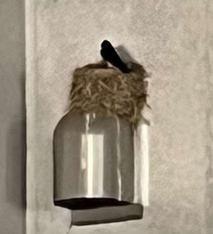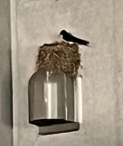 小燕の顔が見えませんが、筒形の大邸宅で餌の到着を待っています。
