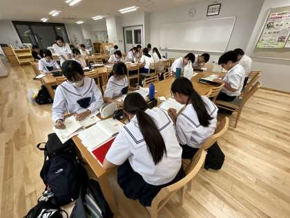 生徒会と学習委員会がコラボして、放課後学習会をしています。学年問わず混じって、学習会。来週の期末考査に向けて頑張ってます!!