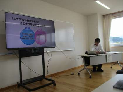 富山市教育委員会から指導主事をお招きし、「イエナプラン的教育」について教えていただきました。より分かりやすい授業を目指して、研修を行いました。