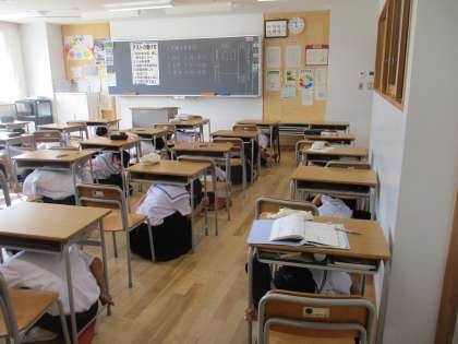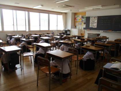 揺れが収まるまでは、机の下にもぐり、頭を守ります。