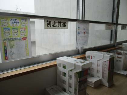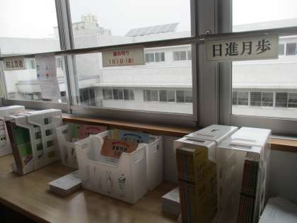 3年生の教室前廊下には、問題集がずらーっと並べてあります。
