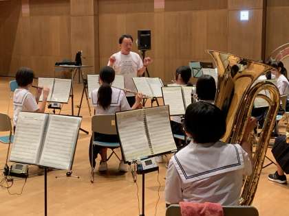 そして、今日はコンクールで演奏する自由曲の作曲者の建部知弘さんにお越しいただき、全体指導を行ってもらっています。生徒は緊張しながらも、またとない貴重な機会にたくさん教えてもらっていました。「本物」に出会い、たくさんのことを学んで、チェンジしていきたいです!