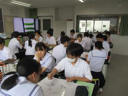 つるつるの豆としわしわの豆から、全部つるつるの豆ができたことの謎を追究しています。