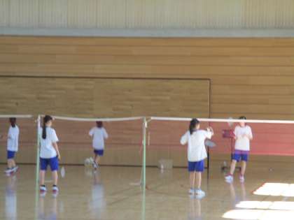 バドミントン部は、今日は体育館で練習しています。