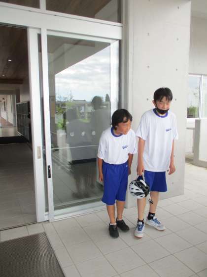 今朝も自主的な挨拶運動に1年生の2人の生徒が生徒玄関前にやって来ました。3日続きました。来週も続けば「本物」ですね。
