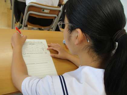 次の活動は、3つ自分の考えを書いた文があり、そのうちの1つは嘘であるというものです。嘘を見抜けるかな。