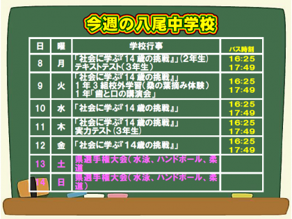 7月7日(日) 今週の八尾中学校