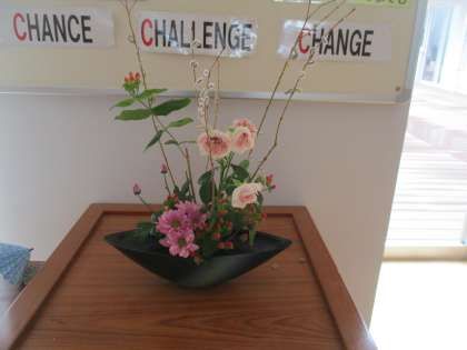 生徒玄関前の生け花も地域の講師の方が生けてくださったものです。