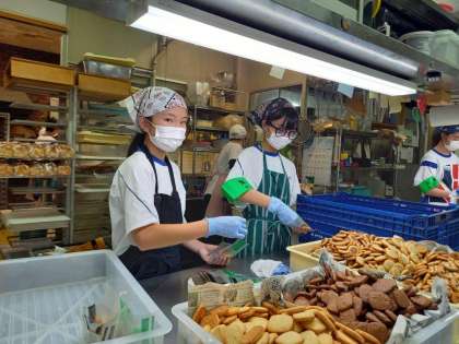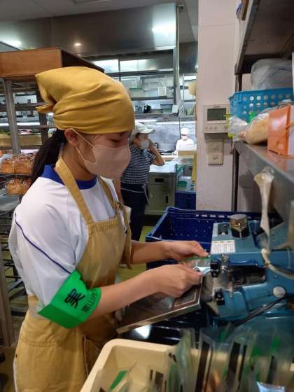 ぱんだぱんだの様子です。クッキーの袋詰め、機械で袋の封をしています。