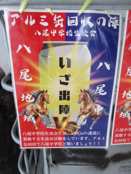 保護者や地域の皆さん、買い物に行かれた際はぜひ、アルミ缶を八尾中回収かごにお願いします。引き続き、協力をよろしくお願いします。