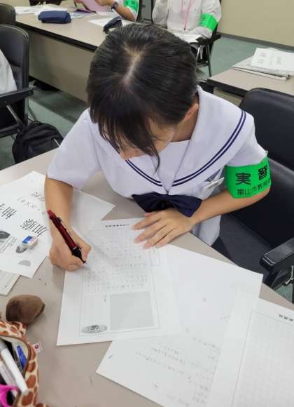 一緒に活動する仲間のよさをインタビューしてまとめています。最終日にプレゼントになるようです。他校の生徒とも関わりながら活動しています。できあがりが楽しみです!!
