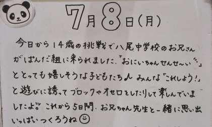 7月9日(火) 2年生 「社会に学ぶ『14歳の挑戦』」2日目 杉原こども園