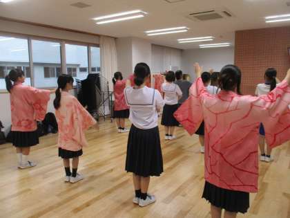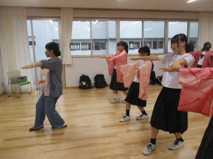 写真は、踊りの練習の様子です。指先まで神経を使って踊っています。