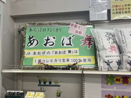 ポップの作成をしています。あおば舞のポップも2人で作ったそうです。「とても真面目な生徒さんで助かっています!」と言っていただきました!