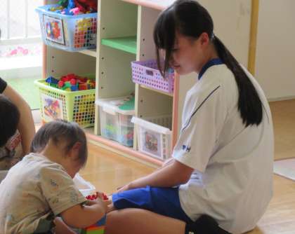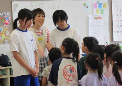 しんでん保育園の活動の様子です。園児との距離も近くなり、楽しそうにコミュニケーションをとっています。