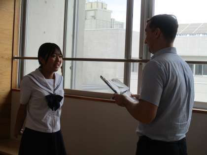 ALTのJ先生に、日本のお勧めの場所を紹介しています。