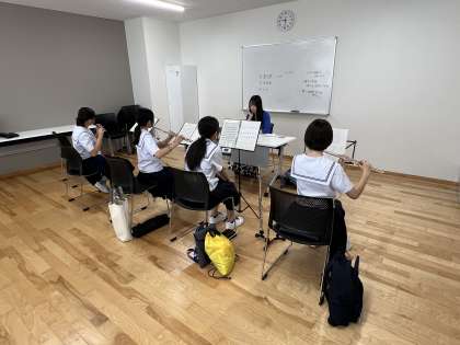木管楽器のレッスン風景です。コンクールに向けてレッスンの先生方に細かい指導を受けています。