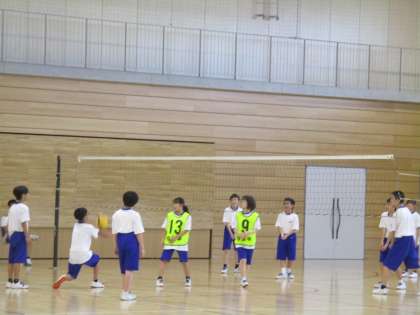 試合形式でバレーボールをするための学習をしています。早く2・3年生のように試合を楽しめるようになりたいですね。