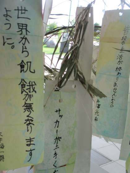 素敵な願い事がたくさん!世界平和や家族の長寿を願う短冊に心が温かくなります。