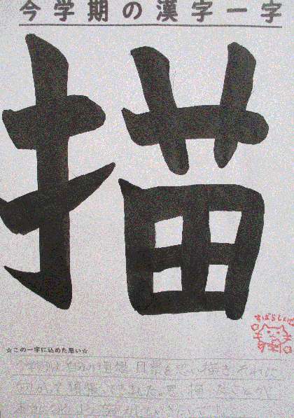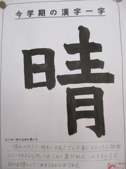 目標をもって頑張り、「描」という漢字を選んだ生徒がいます。