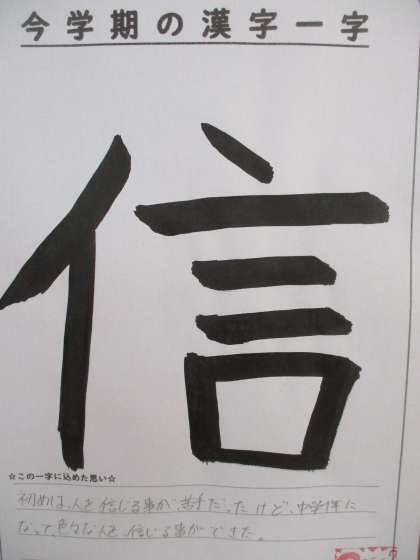 信じることができるようになったから「信」という字を選んだ生徒もいます。信頼し合える仲間と出会えたことは宝ですね。