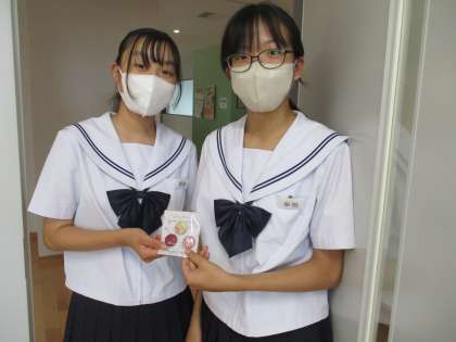 「社会に学ぶ『14歳の挑戦』」で勤務した事業所で作った「縫い子のマグネット」を校長先生にプレゼントしました。世界に一つの素敵なプレゼントです。