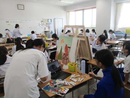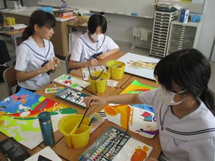それぞれ制作に励んでいます。中文祭に出品する作品にとりかかっている生徒もいます。