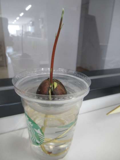 職員室前で水耕栽培していたアボカドが、こんなに大きくなりました。