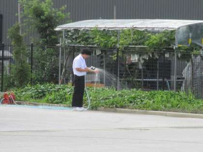 水やりをしてくれています。水をあげてもあげてもすぐに乾いていきますね。