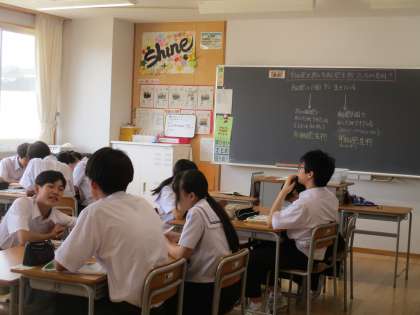 単細胞と多細胞はどちらが有利かについて班で考えています。