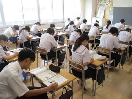 階が上がるにつれて、廊下は暑いですが、教室の中はエアコンが効いていて快適な学習環境です。