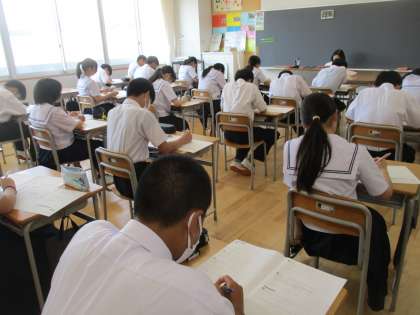 写真上は3年生、中は2年生、下は1年生の授業の様子です。