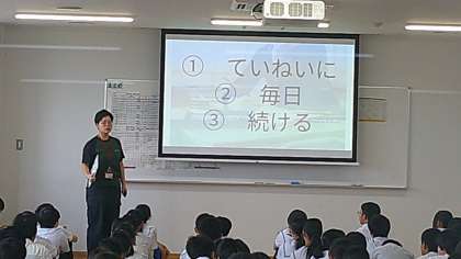 学年主任は「14歳の挑戦」を終え、職業に興味関心が高くなり、進路がより身近になった今、必要なことを考えてほしいと話しました。