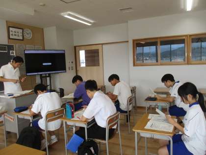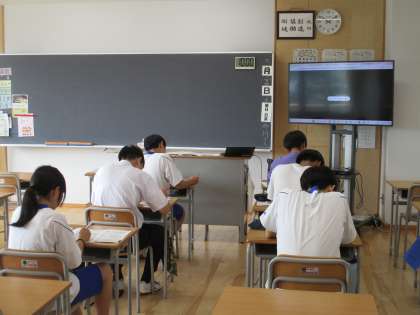 昨日に引き続き、英検3級にチャレンジ講座。3年生が参加しています。