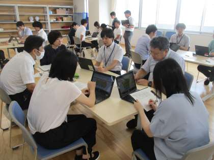 次に、chromebookのジャムボードを活用し、それぞれの段階で目指す生徒の姿や取組を共に考えました。