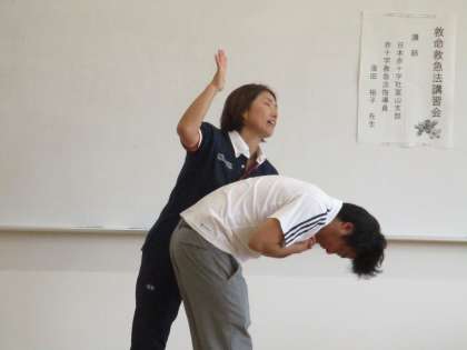 気道異物除去(喉に物が詰まった場合)についても教えていただきました。