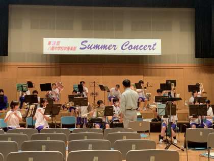 8月に入りました。暑さも厳しい中、吹奏楽部はサマーコンサートに向けて頑張っています。今日から、会場の八尾コミュニティセンターに入り、合奏です。皆さんに届ける音楽を目指して頑張ります!